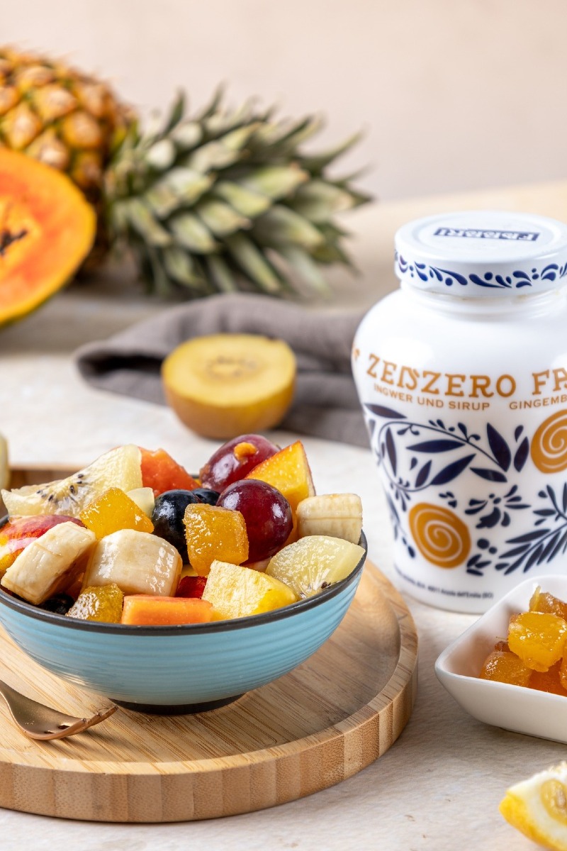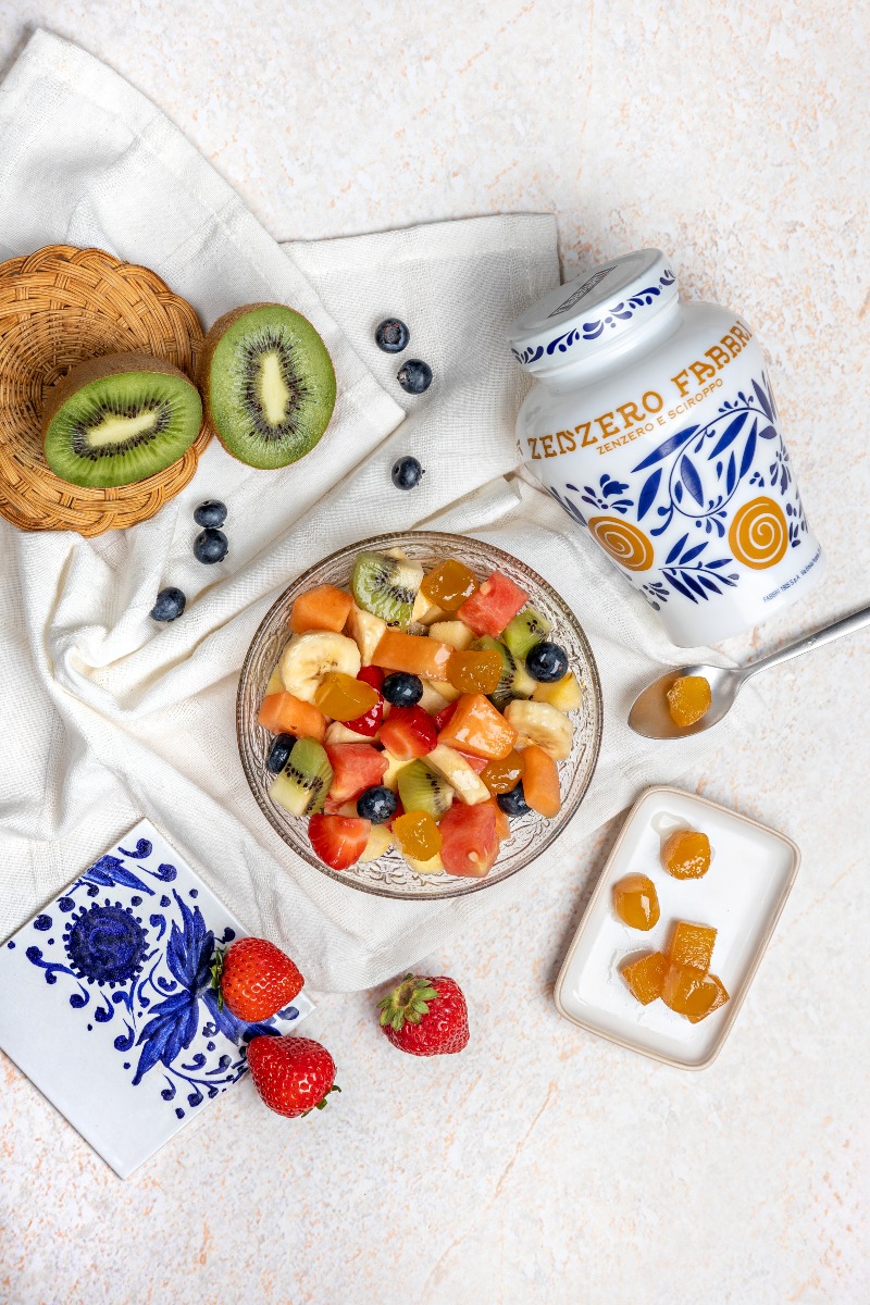 – Fabbri Zenzero – kandyzowany imbir zanurzony w delikatnym syropie z kurkumą o zachwycająco świeżym i przyjemnie pikantnym smaku. Zawsze smakuje tak samo wyśmienicie – podjadany saute ze słoiczka, jako dodatek do słodkich przekąsek, deserów, ciast, lodów, jogurtu i oczywiście do herbaty. Idealny dla tychi, którzy uwielbiają słodkości o dobroczynnych, rozgrzewających właściwościach. Łyżeczka syropowej zalewy dodana do kubka zielonej herbaty doda naparowi lekko ostrej, rozgrzewającej i pobudzającej słodyczy.