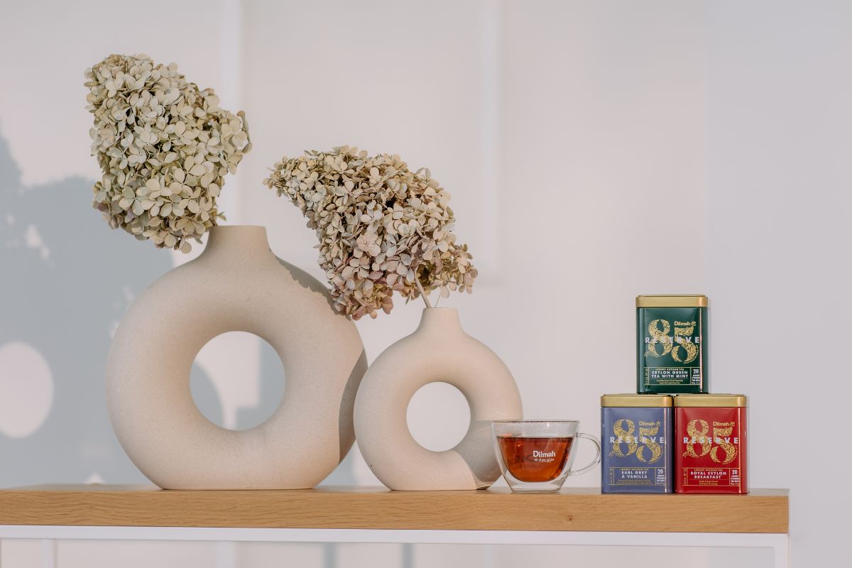 Ekskluzywna i limitowana seria herbat Dilmah 85 Reserve powstała, by uczcić osiągnięcia Merrilla J. Fernando. Rzemieślnicze herbaty pochodzące z najlepszych ogrodów herbacianych Sri Lanki wytwarzane w niewielkich partiach to doskonały smak w każdym łyku oraz szykowna przyjemność na co dzień.